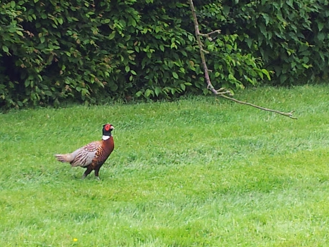 A wild pheasant visits our garden!